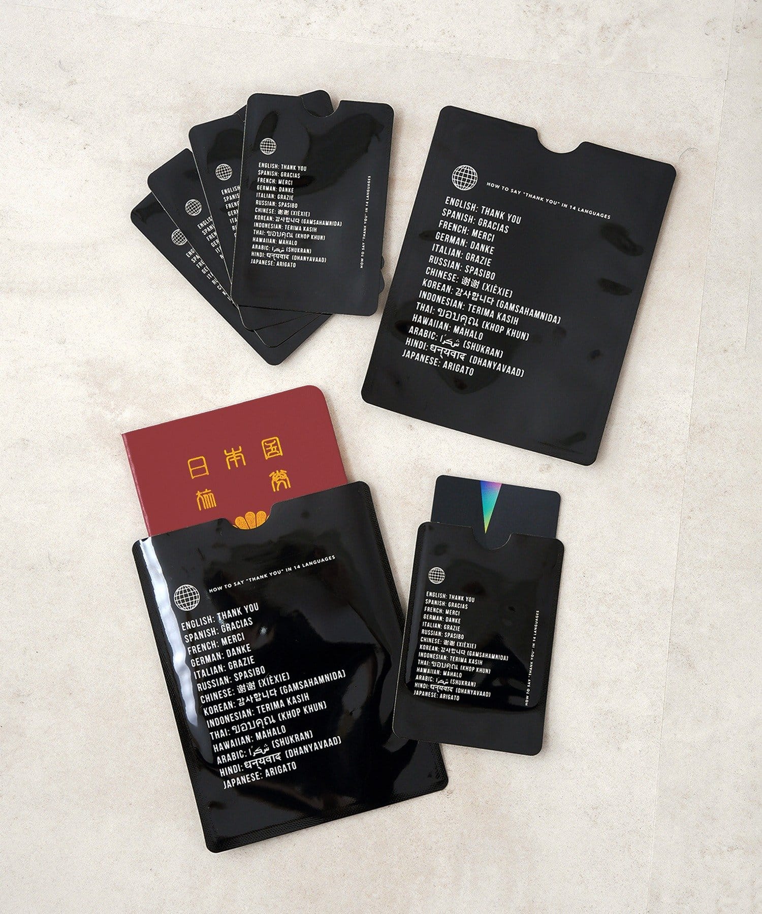 電波を遮断する特殊フィルムを使用したケースに入れれば、カードやパスポートの不正な読み取りを防いで、安全に持ち運べます。