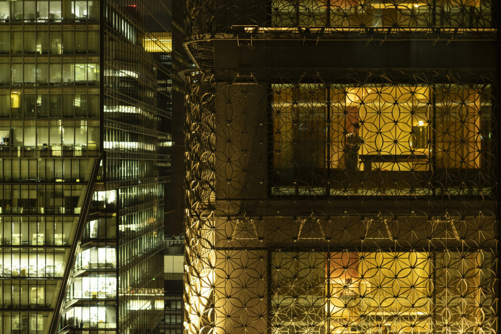 現代に合わせて進化する「塔の日本旅館」。地下2階、地上17階の塔の空間は、畳敷きの玄関、伝統的な和室や各階のお茶の間ラウンジ、最上階の温泉で構成されています。