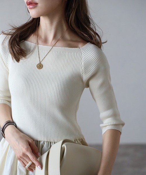 スクエアネックニットコンビコクーンワンピース