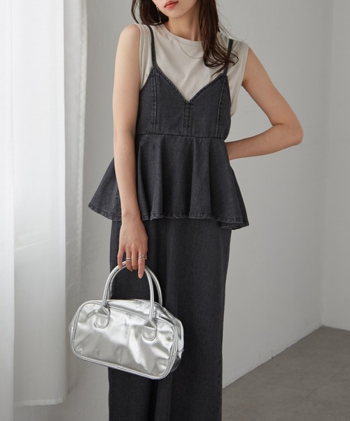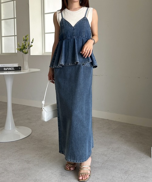 デニムペプラムキャミワンピース