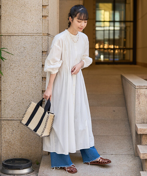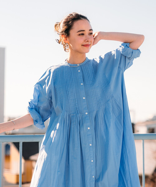 歩くたびにふわっと揺れるシルエットが印象的なピンタックワンピース。やさしげなコットンの風合いとヴィンテージ感あふれるデザインで、ベーシックなカラーでもしっかり存在感が出ます。体のラインを拾いにくいのに、野暮ったく見えないのも好印象。羽織りとしても活躍してくれますよ♡