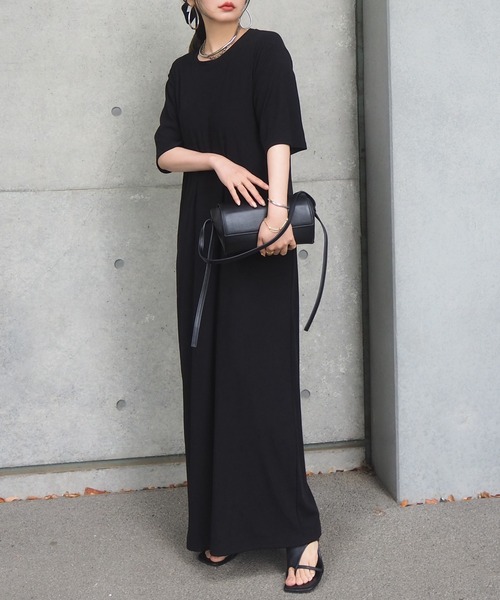 back open twist long dress /バックオープン ツイスト 半袖 ロング ワンピース