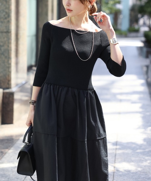 異素材ドッキングロングコクーンワンピース