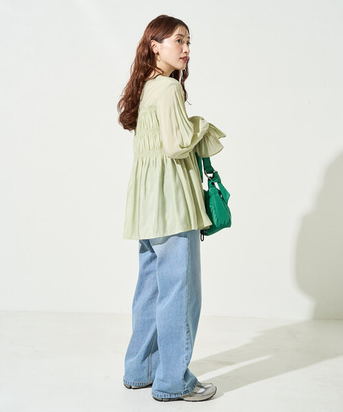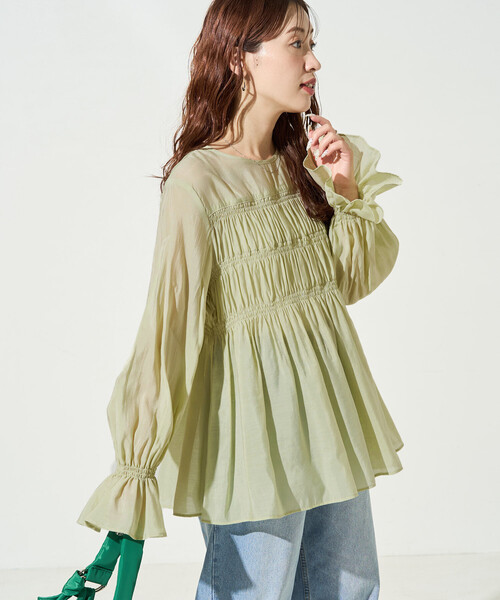限定展開 シアー ギャザー フリル袖 ロングスリーブ ブラウス