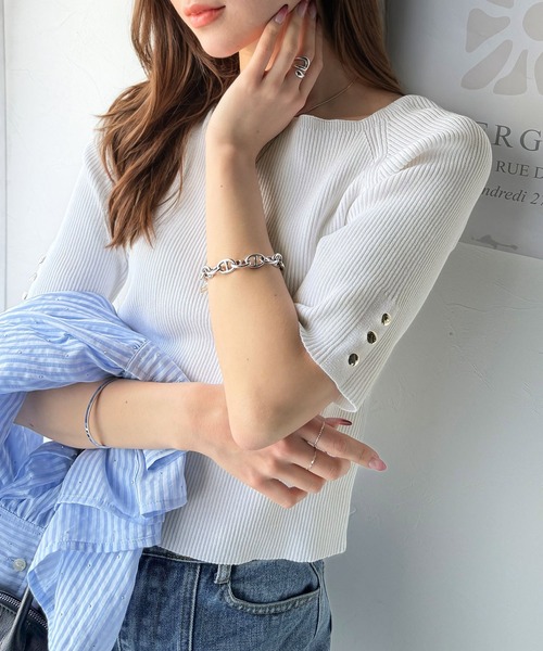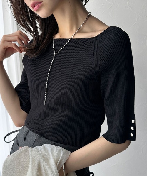 スクエアネックがデコルテラインをきれいに見せ、女性らしさを上乗せするリブニット。羽織りを重ねても首元が詰まらず、軽やかな抜けをキープできます。柔らかなフィット感で着心地もよく、日常使いも◎。袖のさりげないディテールが、大人の装いを格上げしてくれますよ♡