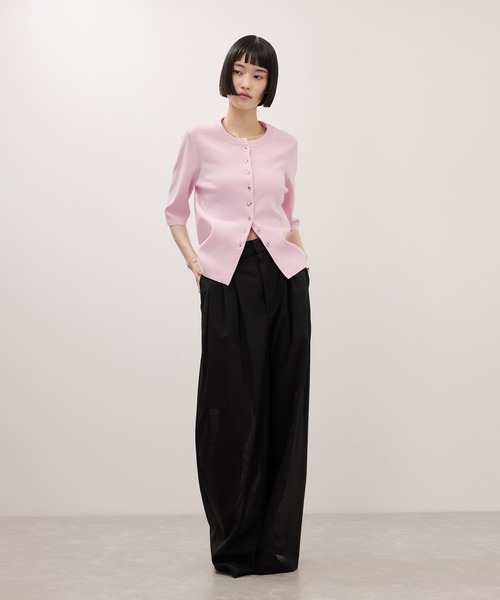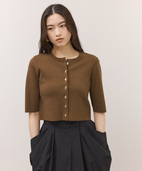 羽織りとしてもトップスとしても活躍する、コンパクトさが持ち味のカーディガン。ゆるすぎず、かといってタイトすぎない絶妙なサイズ感で、どんなボトムとも美バランスが叶います。メタルボタンがさりげないアクセントになり、ワンツーコーデも印象的に。着丈が選べるうえ、ケアも楽ちん。遮熱効果も備わっていて、機能面も言うことなしです。