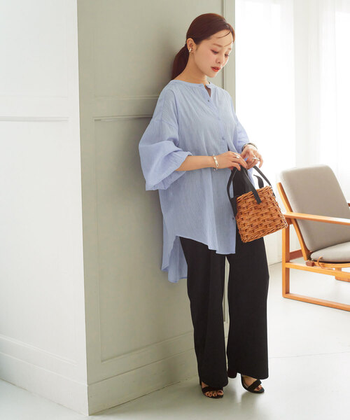 [ 田中亜希子さんコラボ ] 選べる2丈ボリュームスリーブシアーシャツ