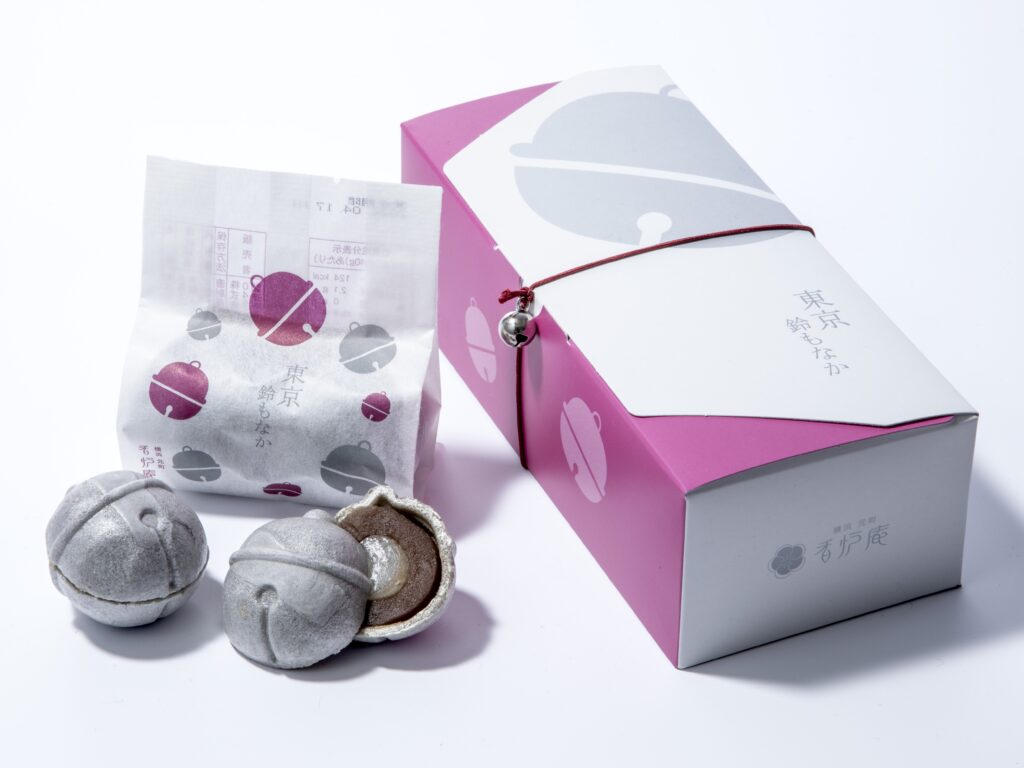 東京駅の待ち合わせスポット「銀の鈴」をモチーフにした、見た目にも楽しめる最中。香ばしい皮の中には、甘さ控えめのこし餡と、もっちりとした求肥が贅沢に閉じ込められています。東京らしさを感じられる、手土産にも贈り物にもぴったりの定番和菓子です。
